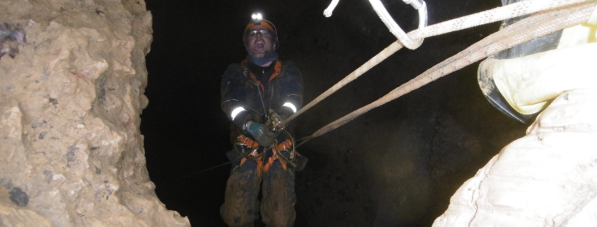 10 minutes de marche d’approche et nous voilà au bord du P20 qui donne accès au réseau. Instruction rapide sur le descendeur « Simple », Seb assure du bas et c’est au tour des petites de se lancer.